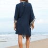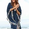 Here’s one for the Grecian summers overlooking the Aegean Sea. Easy and effortless, our breeze kimono is featured in a lightweight crepe fabric with a tassel trim