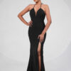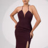 • Elegant halter design with side slit creates a timeless, flattering look on every body shape