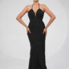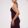 “Turn heads this season with the Adele Dress, crafted from luxurious satin with an elegant halter neckline and flowing silhouette for effortless sophistication and festive glamour. Featuring a flattering V-neckline with tie-up halter straps and a dramatic side slit, this statement dress creates a polished, contemporary look that’s perfect for celebrations and special occasions.