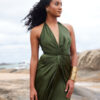 • Front knot twist halter neck for striking, elegant appeal