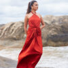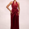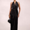Elevate your evening elegance with the Venus Dress, crafted from luxurious satin for effortless sophistication and all-night glamour. Featuring a sleeveless front knot twist halter neck and flowing maxi silhouette, this dress drapes beautifully while offering a modern, timeless look that’s perfect for festive celebrations and special occasions.