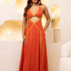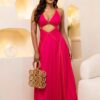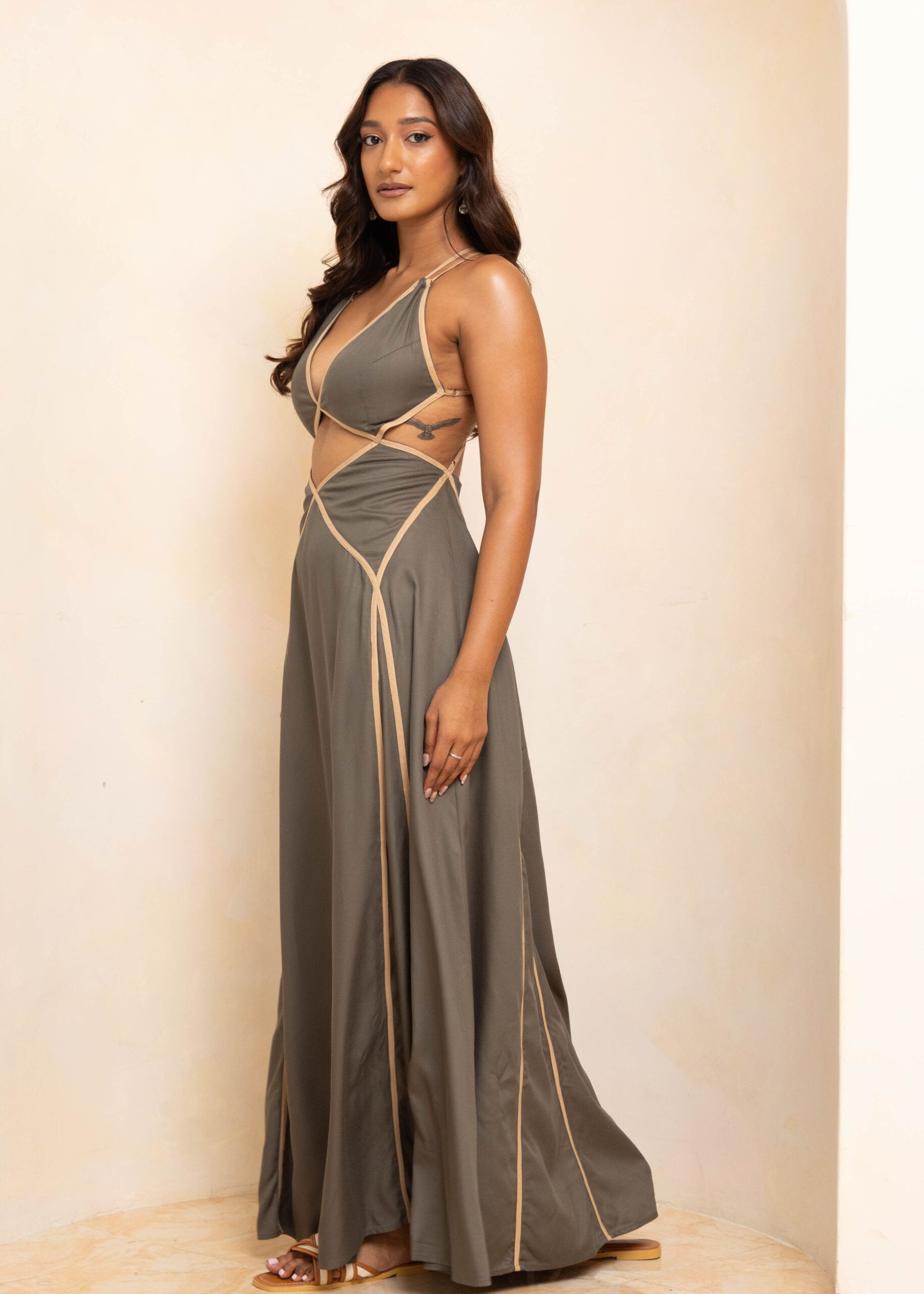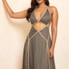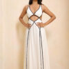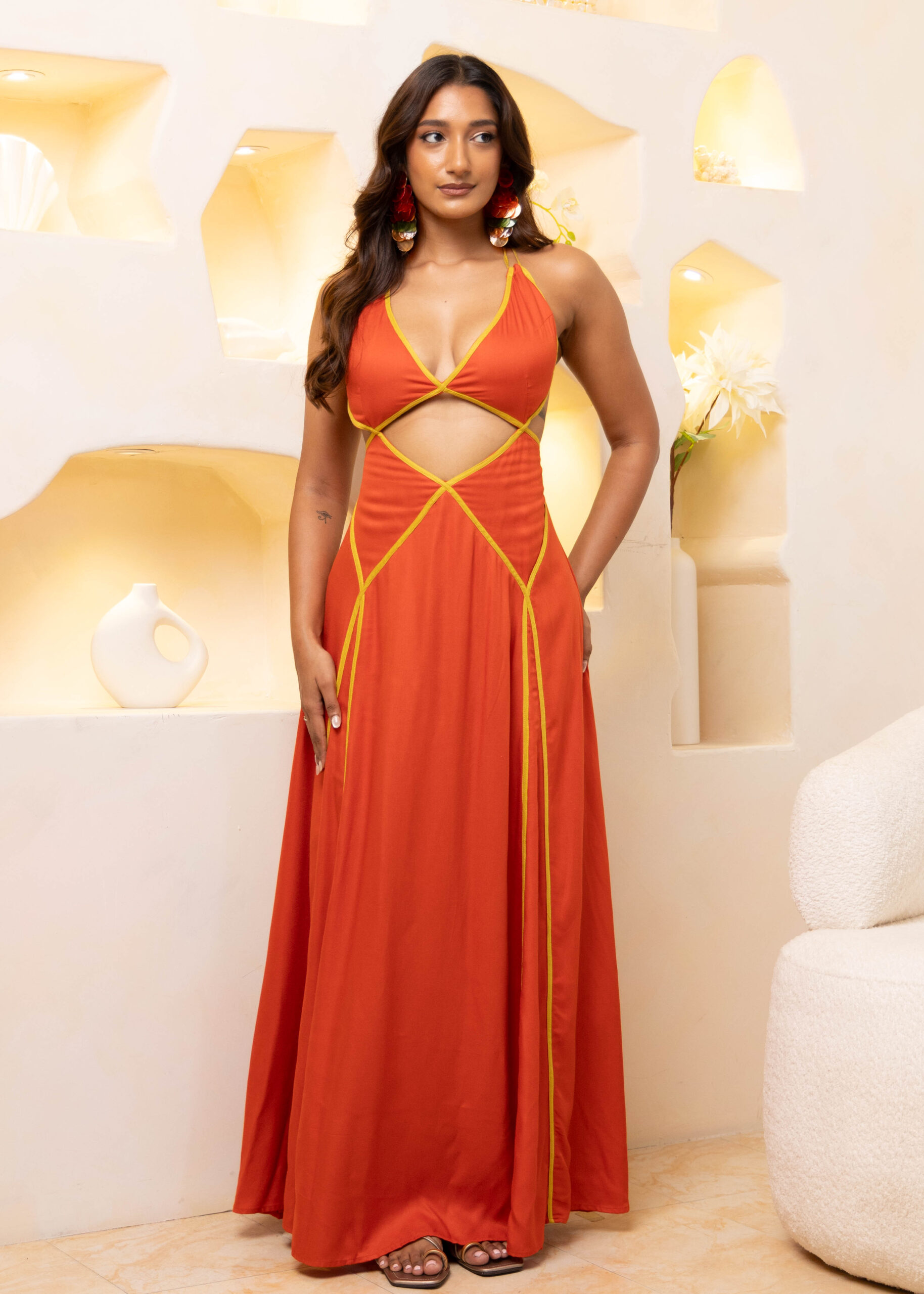 The Capri Cutout Maxi Dress is designed for effortless elegance with a flattering A-line silhouette, adjustable spaghetti straps, and strategic cutouts that highlight your waist. The contrast piping detail adds a sophisticated finish, making this the perfect piece for vacation days, casual outings, and resort evenings alike.