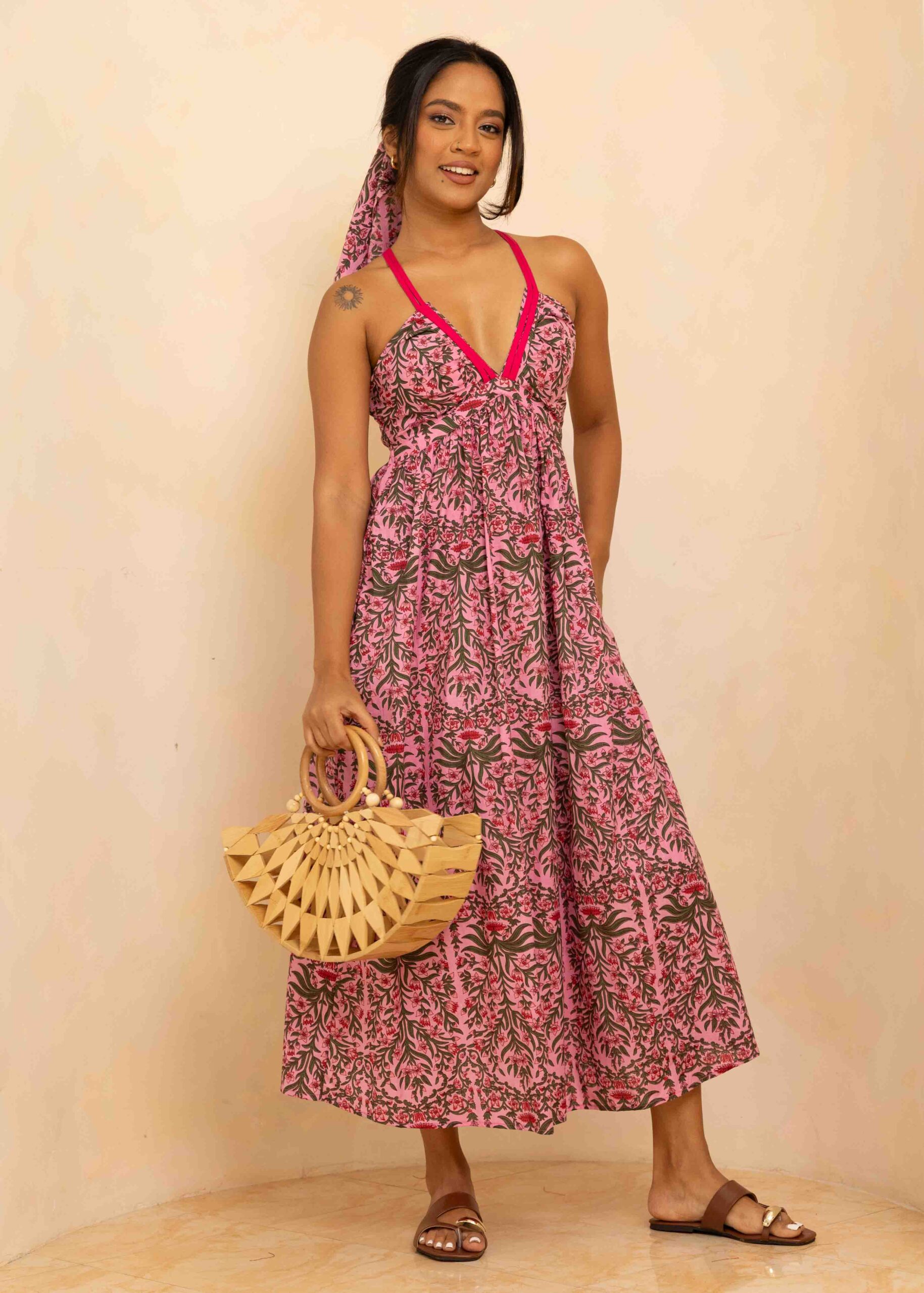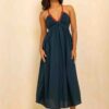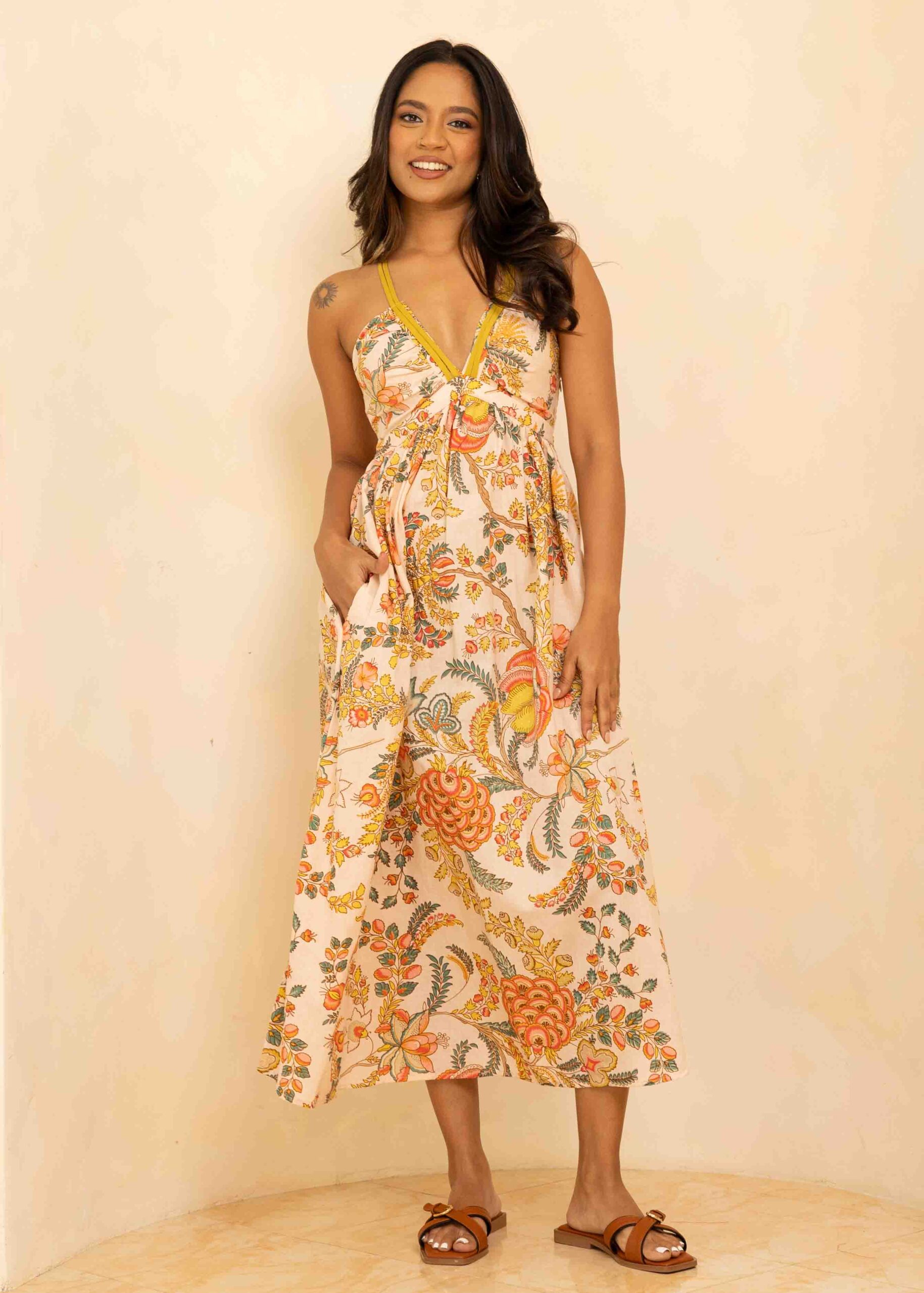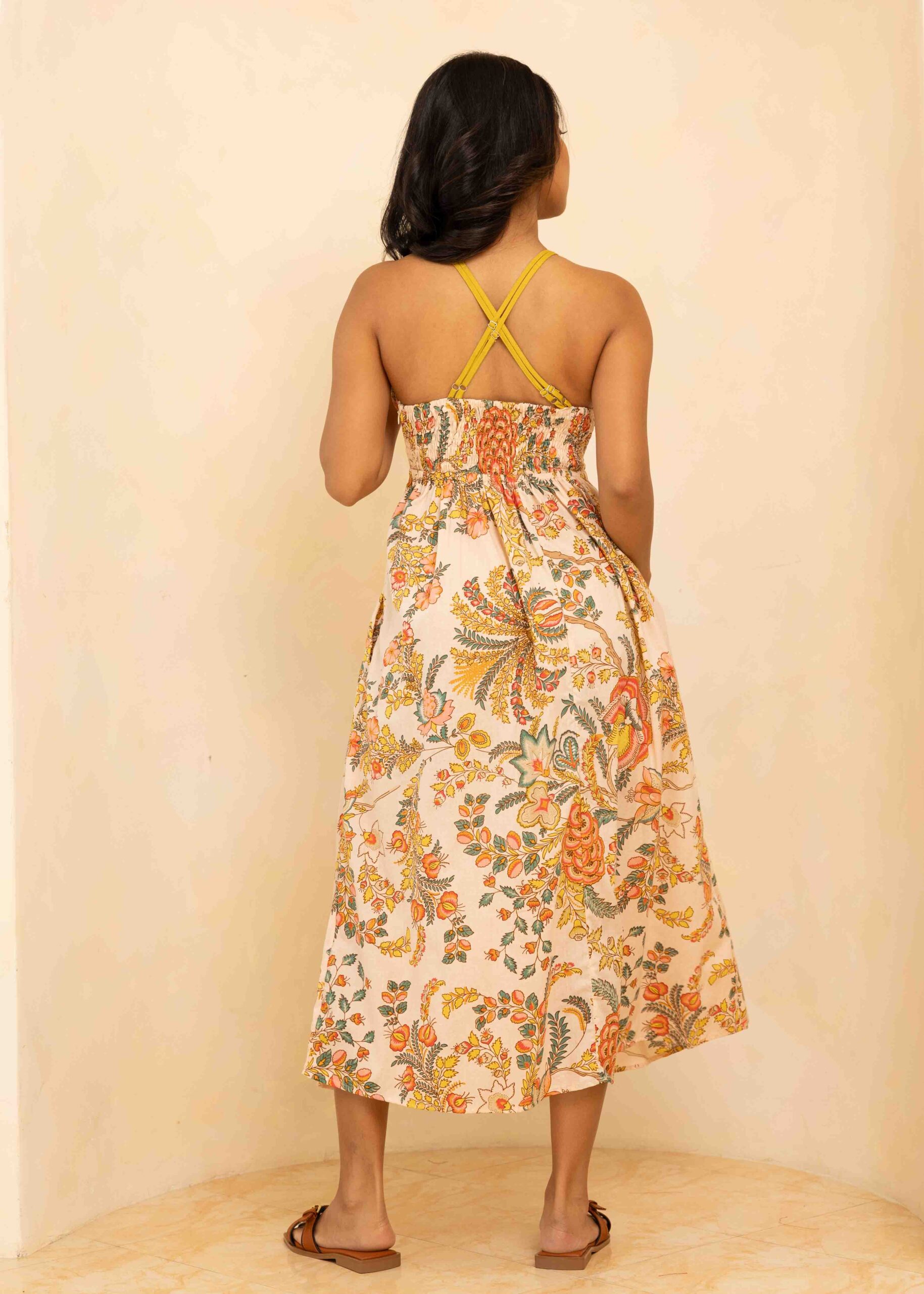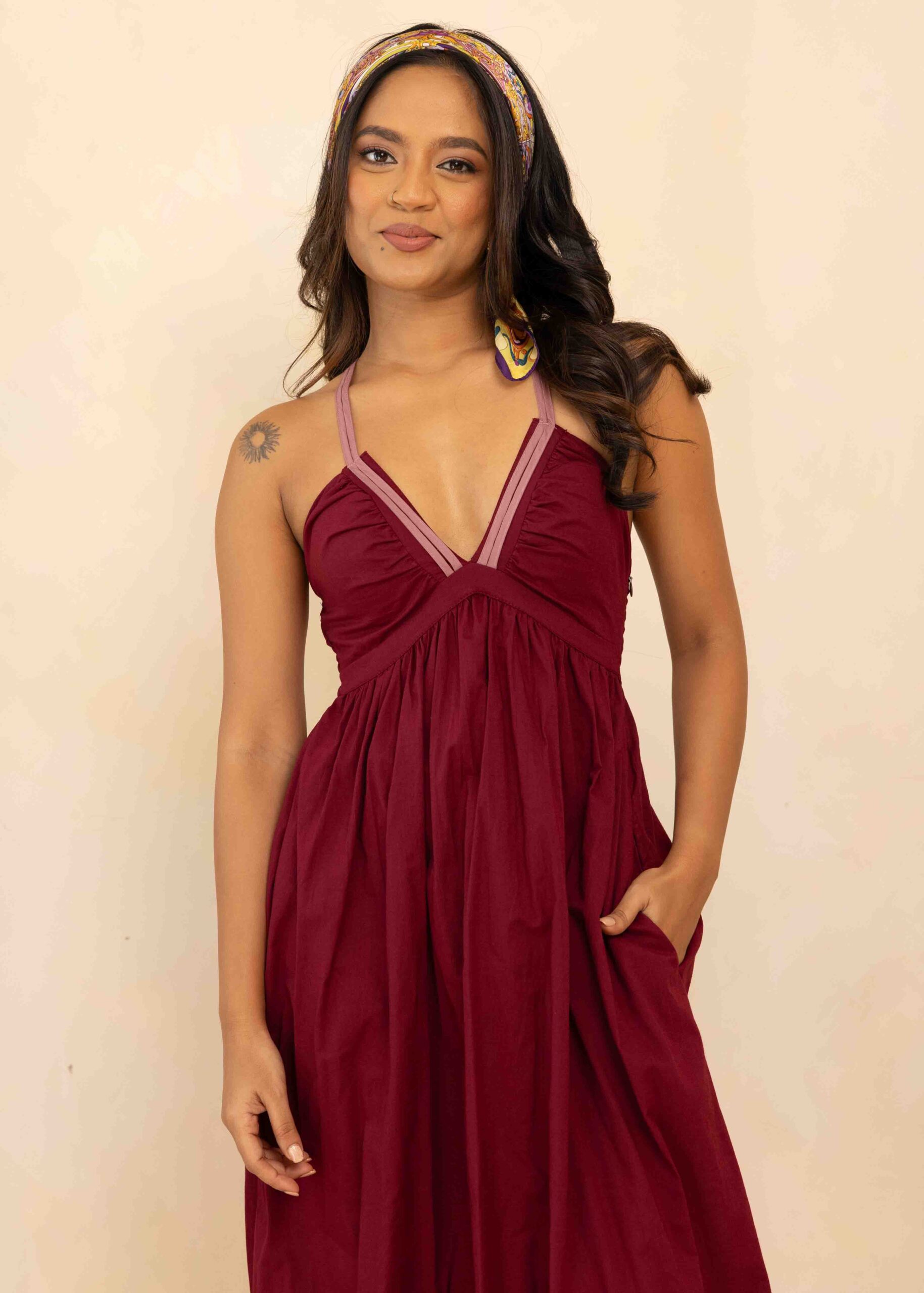Perfectly balanced between casual charm and polished elegance, our Alyssa Dress is a midi dress with contrast piping straps and back smocked detailing. This versatile piece combines structured sophistication with comfortable ease, creating a look that effortlessly transitions from day to night. The contrast piping adds a refined touch while the back smocked detail ensures a flattering, comfortable fit that moves with you.